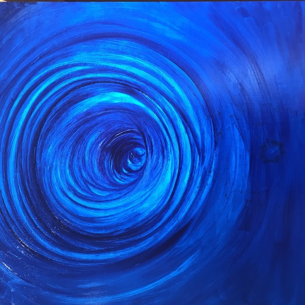6 September 2020 — Last tuesday, when I picked up my brush, I heard a guide’s voice in my head: ‘start with blue.’ So I chose a cyan oil paint and started filling the board. Then, as I have often experienced in my healings, my hand started moving by itself in larger and larger circles.