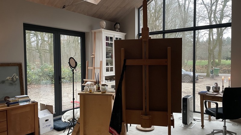 Terwijl ik over de jaren mijn trauma’s verwerkte, ging mijn creativiteit geleidelijk stromen. Ik opende de verhuisdozen met schildermaterialen die ik mijn hele leven ongebruikt van de zolder van het ene huis naar die van het volgende had gesleept, en begon te schilderen. Mijn lief gaf me voor mijn 50-ste verjaardag een schilderworkshop cadeau waarna ik naar de kunstacademie ging. Tien jaar lang studeerde ik af en aan bij verschillende leraren en werkte ik in mijn vrije tijd in mijn atelier. Op een dag stond ik achter mijn ezel en besefte ik in elke vezel van mijn lichaam: dit is het! Dit is waarvoor ik gekomen ben! Tegelijkertijd ontdekte ik een nieuwe werkvorm om de energetische velden te verkennen: het multidimensionaal opstellen, waar ik vervolgens les in ging geven. Meer over deze werkvorm vind je hier.